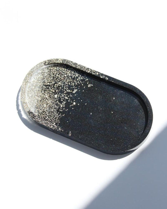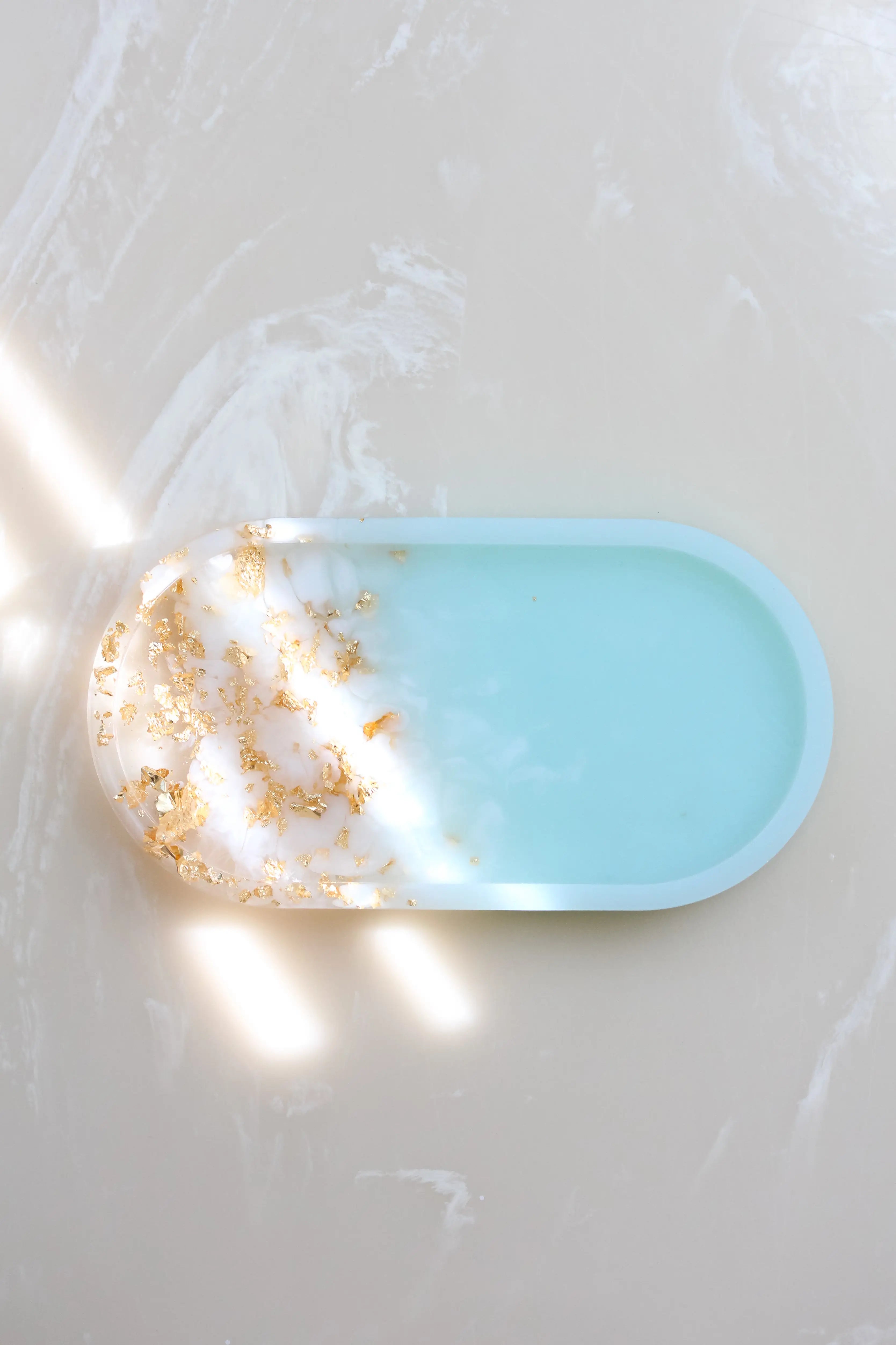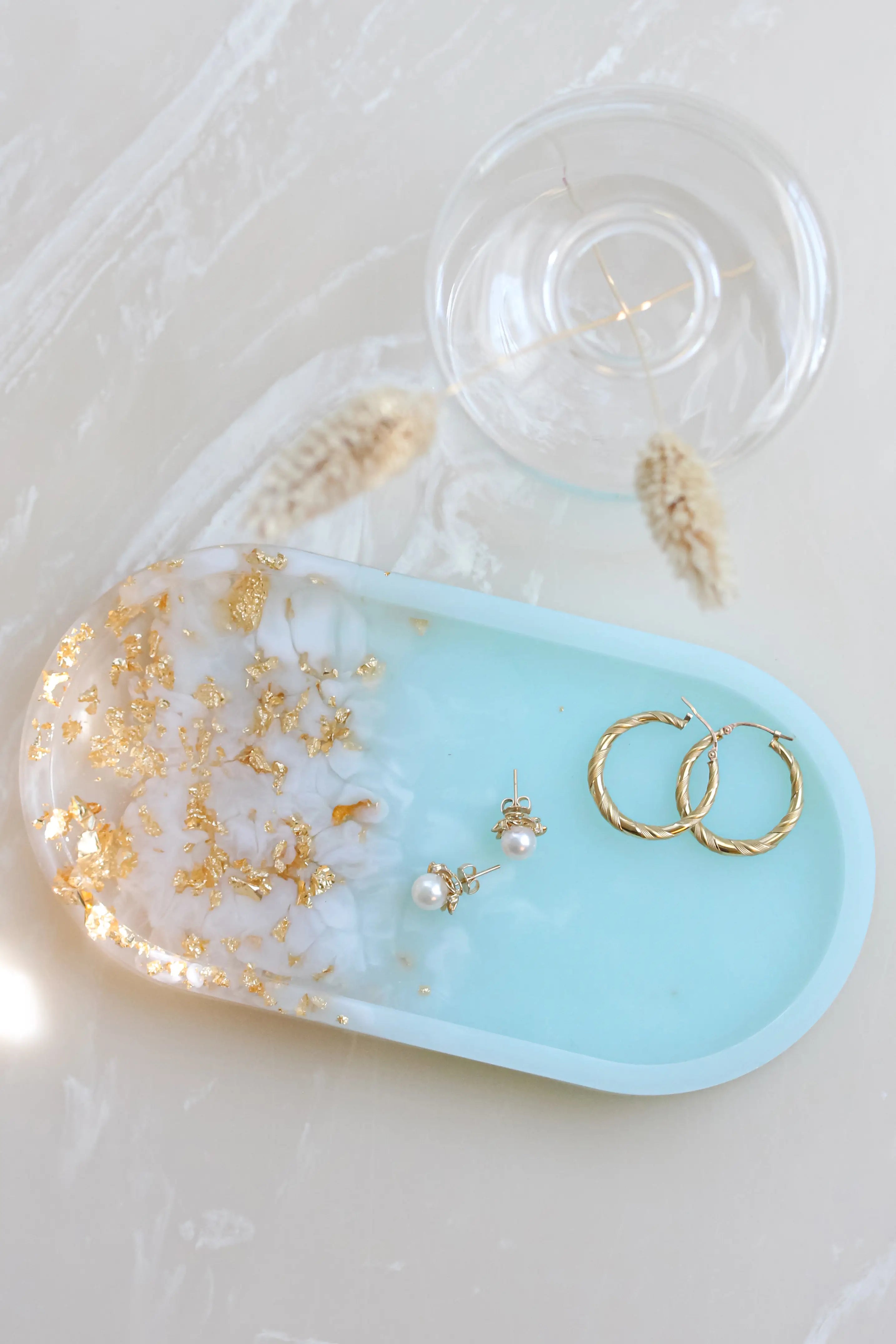 This hand crafted oval shaped tray is the perfect vanity or catch-all tray for storing and displaying your trinkets, jewelry or keys! Place the tray on your vanity table, foyer table or nightstand.